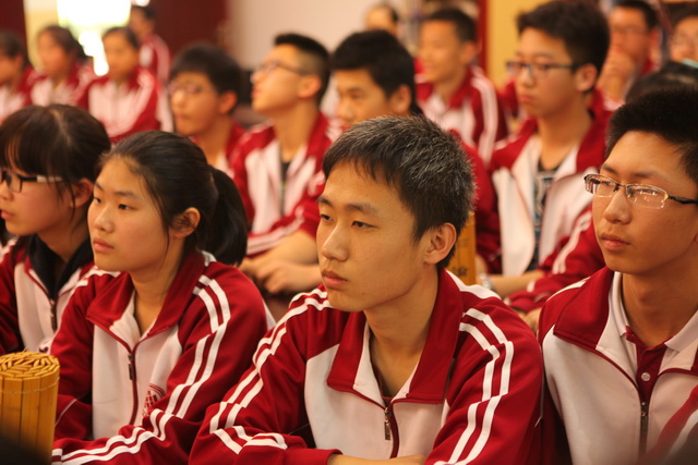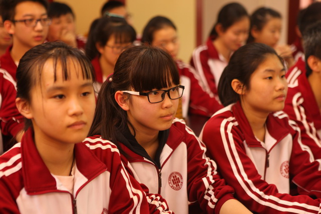 曲江一中学生会主席李欣沛同学代表捐书学生发言