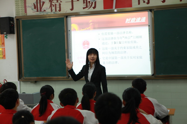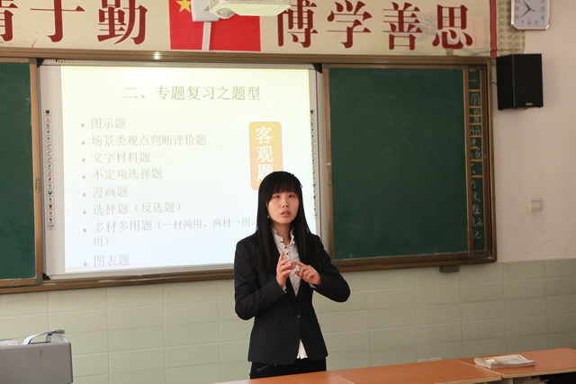 2016年中考交流活动,在四位老师的示范课中拉开帷幕,石燕聪老师上了一节题为《综合性学习》的示范课,石老师精巧的构思,全方位的互动,图表式的归纳与总结,让知识点更清晰,让考点更明了;在白璇老师《两点之间,线段最短》示范课中,她以历年中考真题为磨刀石,让学生在一题多解中体验数学之美,收获成功的快感,树立思维自信、智慧自信;孟丽静老师上了一节题为《Task-based Reading Strategy》的示范课,她以任务型阅读为重点,通过题型分析、技巧点拨、真题专练带领学生走近中考试卷,把握任务型阅读题型,掌握答题技巧,帮助学生提高做题效率; 李善婷老师以《法律专题复习》为题,她针对学生容易混淆的“公民”和“人民”的两个概念, 通过数学集合包含关系,清晰地揭示了两个概念的内在联系,利用历年中考真题训练剖析了两个概念的本质区别 ,通过权利接龙游戏增强对知识点的巩固和识记。四位老师完美的教学设计、探究式的课堂活动、精致的问题互动、精彩的学生课堂评价,给学生充分的课堂平等与尊重,寓教于乐,给在场的师生留下了深刻的印象。