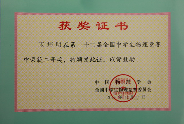 在刚刚结束的第32届全国中学生物理竞赛陕西赛区复赛中,我校共有9名学生再创佳绩,其中获省级二等奖3人,省级三等奖6人。高2016届(3)班赵旭东,宋炜明、(4)班吕玥萱分别获得省级二等奖;高2016届(3)张冰玥,(4)班王俊义,郭旭凡(5)班文浩懿,高2017届(3)班王珏,(4)班潘曌晨,等6名同学分别获得省级三等奖,取得历史性突破。指导教师于静、赵伟、宗彦峰、王宝童特向以上同学和指导老师表示祝贺!