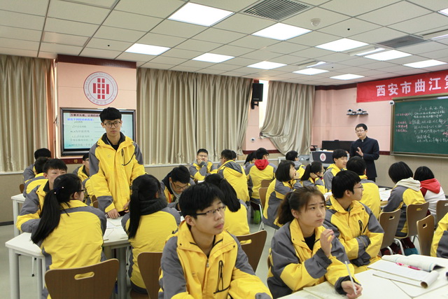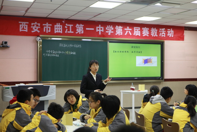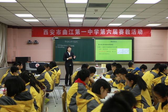 2015年12月7日,我校在录课教室举行了第六届赛教活动高中数学组教师的赛教活动。今天赛教活动特邀西安市教科所数学教研员汪香志老师,西安市曲江第一中学教务处主任朱琳瑛老师,西安市曲江第一中学教研室副主任刘公潜老师,西安市曲江第一中学教务处副主任高秋棉老师,西安市曲江第一中学数学教研组组长魏巍老师担任评委。来自西安市第四十五中的部分数学老师,及我校的部分数学教师观摩了这次比赛。