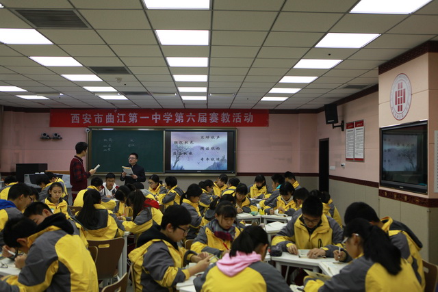 2015年12月8日,曲江第一中学赛教活动(高中组)进入了第二天激烈角逐中。今天的四节课分别来自高一年级的乔亚龙老师和彭玲老师、高二年级的林晓敏老师和高三年级的屈婷老师。四位老师或深情或优雅,或严谨或激情,四种鲜明的课堂风格彰显了语文组精湛的教学技艺和深厚的文学功底,带领大家进行了一场精彩纷呈的阅读之旅。