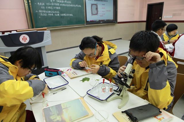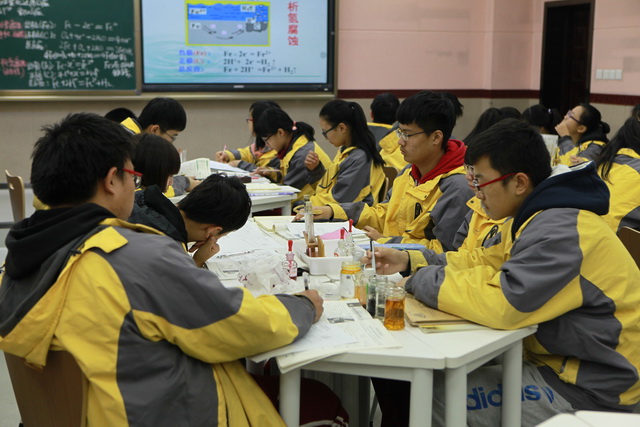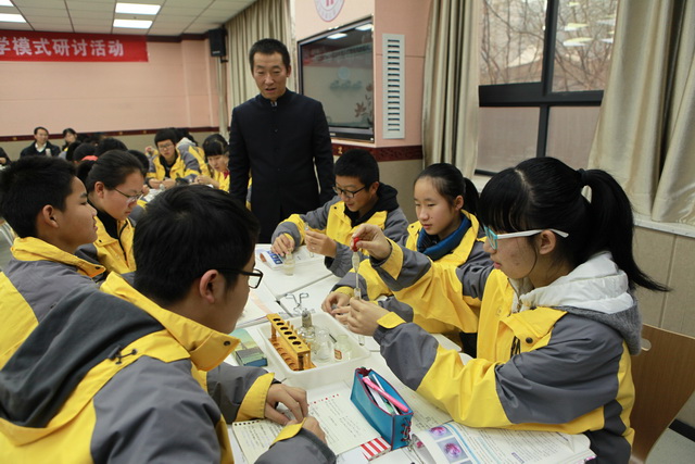 参加此次赛教的老师分别是化学老师曾蓉蓉、王海军,物理老师宗彦峰、王智国,生物老师杨玉龙、谢富瑞。六位参赛老师们采用了形式多样的教学方式让学生感知科学现象,探究未知领域。杨云龙老师用微课导入,让学生们好奇于漏斗中的溶液为什么会上升,关注到细胞的失水和吸水,探究植物细胞的质壁分离和复原现象。谢富瑞老师让学生们通过活动模拟物质的跨膜运输,把微观现象变宏观,既丰富了课堂氛围,也加深了学生们对跨膜运输方式的理解。曾蓉蓉老师用实例吸引学生关注金属的电化学腐蚀现象,并通过小组合作学习的方式探究其中的原理,并利用所学尝试解决生活中的问题。王智国老师从物体的平衡状态出发,利用牛顿运动定律解决物体运动问题,并引导学生探究失重和超重的奥秘。“铝超标”这一吸引人眼球的内容,让学生关注到铝这种金属,王海军老师在引导学生分析铝的化学性质,并通过实验探究为什么铝能与强酸强碱发生反应。宗彦峰老师的《电磁感应中的单棒问题》虽然是节复习课,但他并没有只让学生单纯做题,而是在引导学生总结知识点的基础上穿插技能的训练和提升。