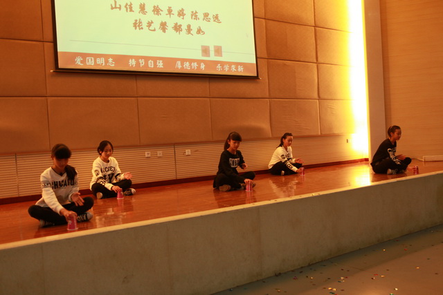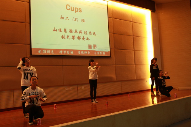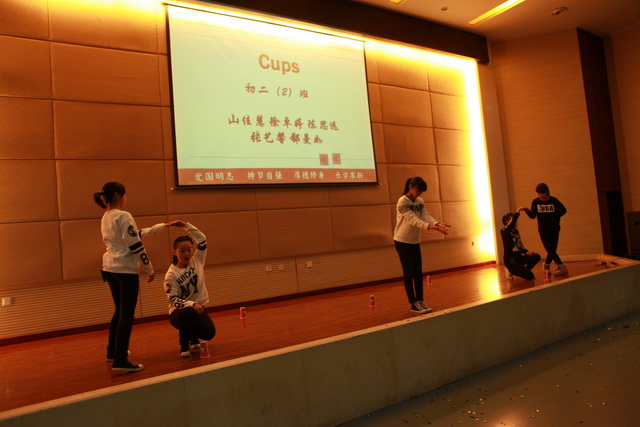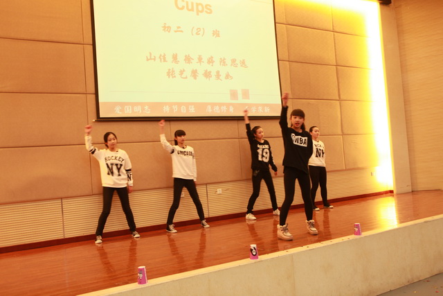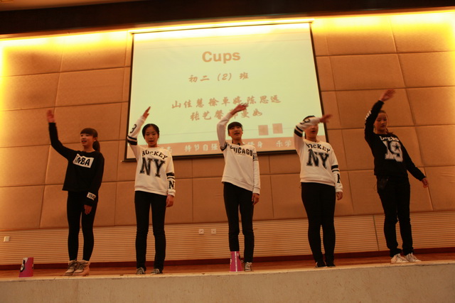 初2017届2班山佳慧、徐卓婷、陈思远、张艺馨、郗曼如同学演唱英文歌曲《Cups》