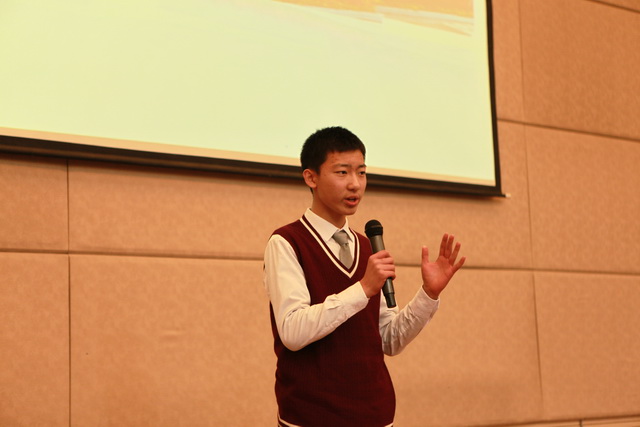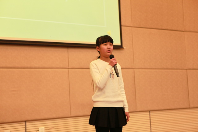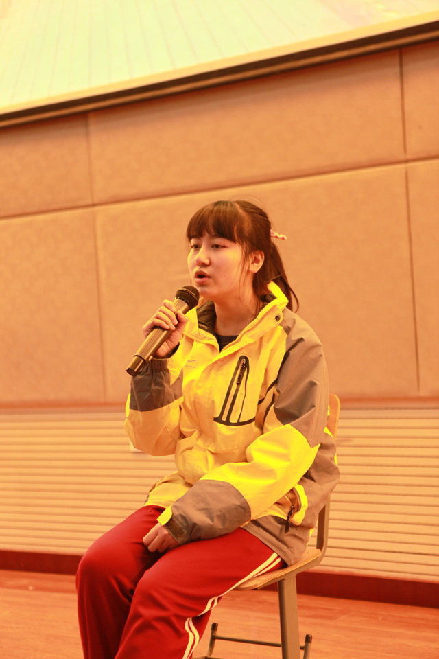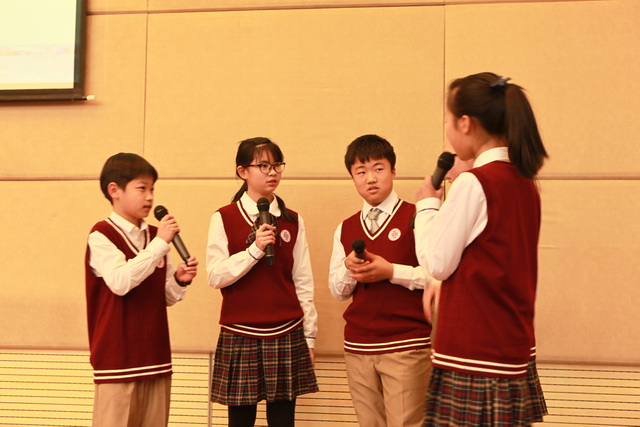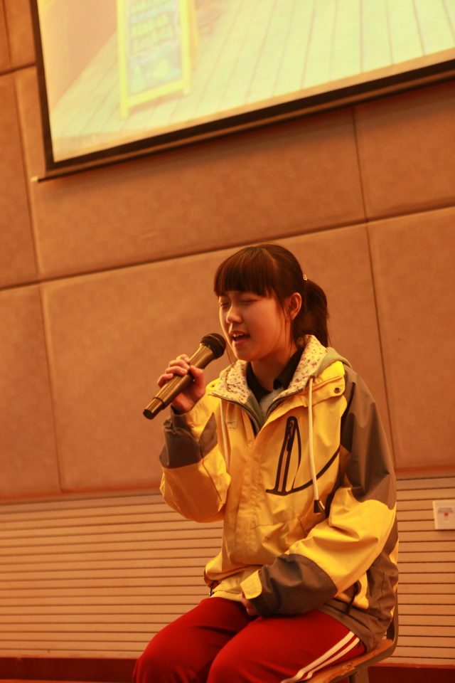 第一个环节是个人演讲环节。高二(1)班的张子怡激情洋溢,声情并茂。高一(3)班的董妍詟通畅流利,落落大方。初二(6)班的刘鸣铎用纯正的口语发音,征服了全场的观众。初一(2)班的李欣妍也不甘示弱,用流利的口语,展示出了自己的风采。