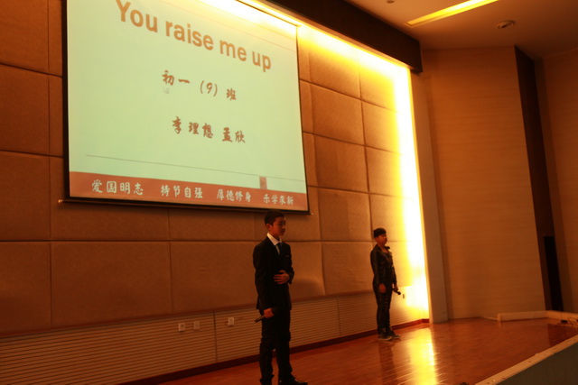 初2018届9班李理想、孟欣演唱英文歌曲《You raise me up》