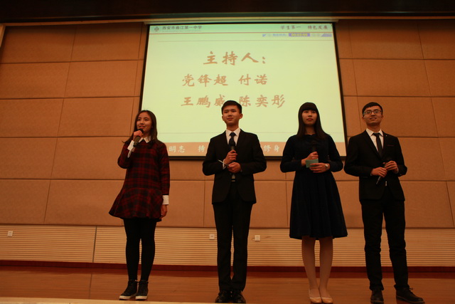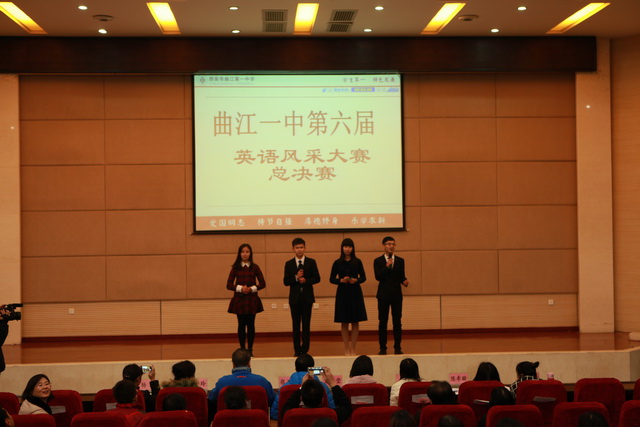 12月16日下午,西安市曲江第一中学第六届英语风采大赛决赛在报告厅如期举行。初一,初二,高一,高二年级的最精彩的表演都会聚于此,这是一场视觉与听觉的饕餮盛宴,激动人心。比赛分为四个环节:个人演讲,广告创意,电影配音,英文歌曲演唱。
