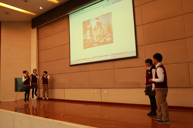 第三个环节是电影配音环节。虽高二(1)班与初二(1)班的节目均为《头脑特工队》,但都各有各的特色,得到了评委老师的一致好评。高一(2)班带来的电影《Mr. Peabody & Sherman》给现场的观众带来了极大的震撼。初一(2)班呈现的《Despicable Me》让人为之喝彩。