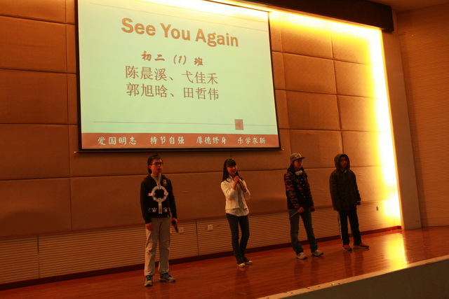 初2018届1班陈晨溪、弋佳禾、郭旭晗、田哲伟演唱英文歌曲《See You Again》