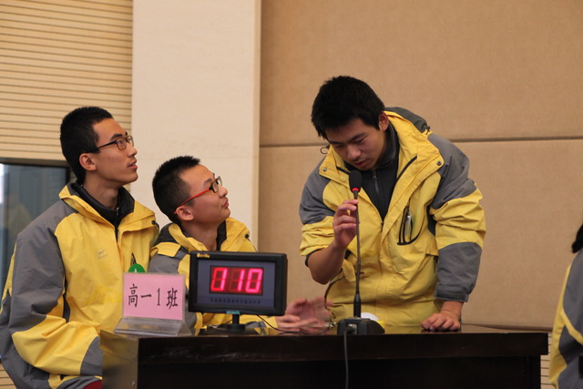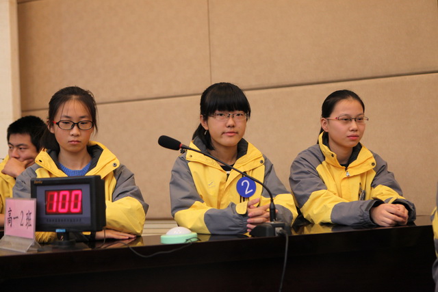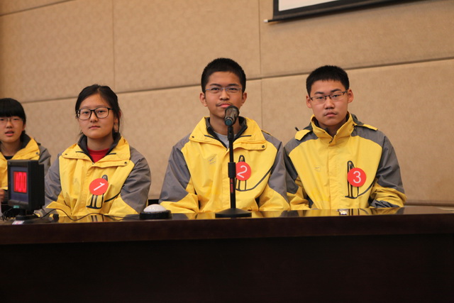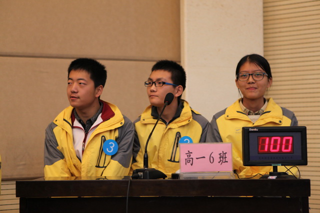 此次文科竞赛分三个环节进行。在必答题环节,通过6组共18道题的比拼,各代表队均发挥了极佳水准,几乎无一答错,各队平分秋色。在第二环节抢答题中,各队选手集中精力,在主持人读完题后,便争相迅速按下抢答题,整个场面紧张激烈。而最有挑战性的环节当属风险题。20、30、40三个分值的题,都是文、政、史、地科目中有很大难度的题,有一部分选手选择了40分的题,胆大心细,集合全队的智慧正确地回答了问题,实现了反超。而有的队伍为了保分起见,选择了20分的题目。各队斗智斗勇,全盘考虑,场下观众的心情也随着答案的对错时起时伏,赛场气氛极佳。