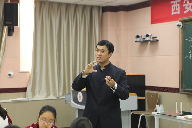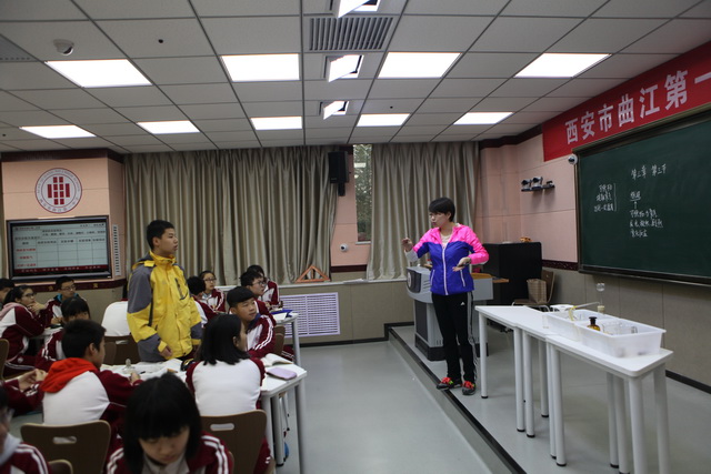 2015年10月29日,曲江一中第六届赛教活动进入到了第四天。今天上场的是理综组的四位老师。比赛特邀陕西师范大学物理学与信息技术学院王较过教授,雁塔区教师进修学校韩红艳研究员,陕西师范大学附属中学原化学教研组长刘孝元老师,西安市曲江第一中学副校长陈勇刚老师以及西安市曲江第一中学理综教研组组长赵常斌老师担任评委。来自石泉县城关中学、西安市第四十五中的部分老师,及我校的全体理科教师观摩了这次比赛。