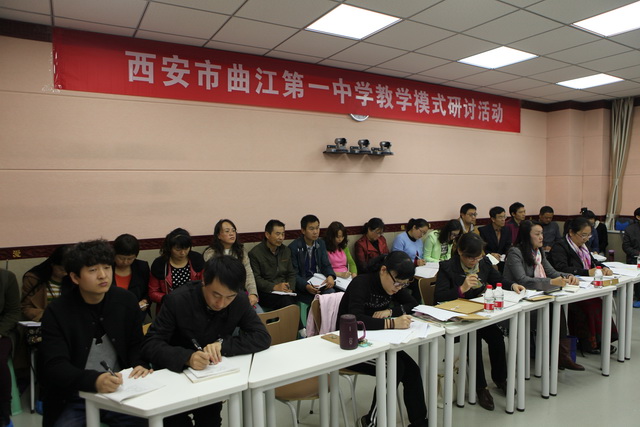 2015年10月30日,曲江一中第六届赛教活动进入到了最后一天的角逐,今天比赛的主角是文综组的四位老师,比赛特邀雁塔区教研员赵晓绒,雁塔区教教研员高秀梅,西安市曲江第一中学政教处主任余爱东以及西安市曲江第一中学文综组教研组长罗红梅担任评委。来自石泉县城关中学、西安市第四十五中的部分老师,及我校的全体文综组教师观摩了这次比赛。