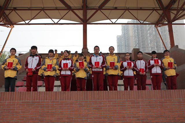 随后,学校领导为我校在以下四项活动中表现优异的同学进行表彰:一、在我校校歌征稿活动中,同学们才思敏捷并踊跃投稿,其中14位同学的作品分别荣获一、二、三等奖,学校特此给予现金及证书奖励;二、在我校“纪念中国人民抗日战争胜利暨反法西斯战争胜利70周年”校园书画艺术作品展活动中,同学们构思巧妙,提供的作品主题突出、形式多样,在书法、绘画、摄影方面多位同学获奖;三、在过去的一学年中,学生会的工作人员积极为全体师生服务,组织了丰富多彩的校园活动,为同学的校园生活增添了一抹亮丽的色彩,学校领导为他们颁发荣誉证书以兹奖励;四、我校晨检员在2014——2015学年第二学期的晨检工作中成绩优异,学校给予证书鼓励。