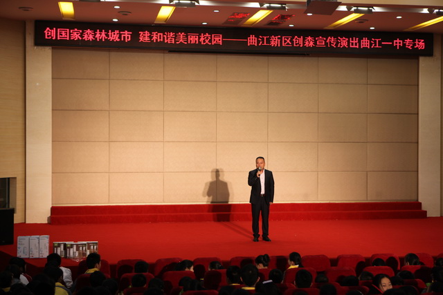 11月20日14时,“创国家森林城市 建和谐美丽校园”曲江新区创森宣传演出在曲江一中报告厅隆重举行。初2017级全体同学和班主任老师观看了本次演出。
