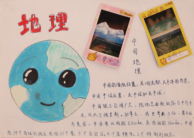 本次手抄报制作活动,由地理组王莉、罗小庆老师发起,得到了七年级全体学生的积极响应。学生以“地理”和“爱国”为创作主题,自由分组,利用课余时间搜集资料、整理文字、画图、排版,成果形式灵活多样。