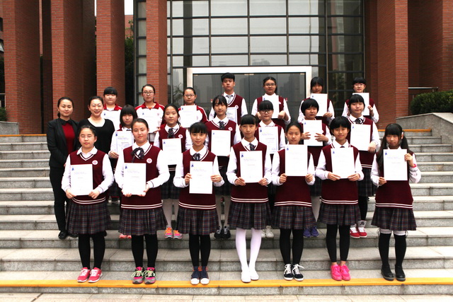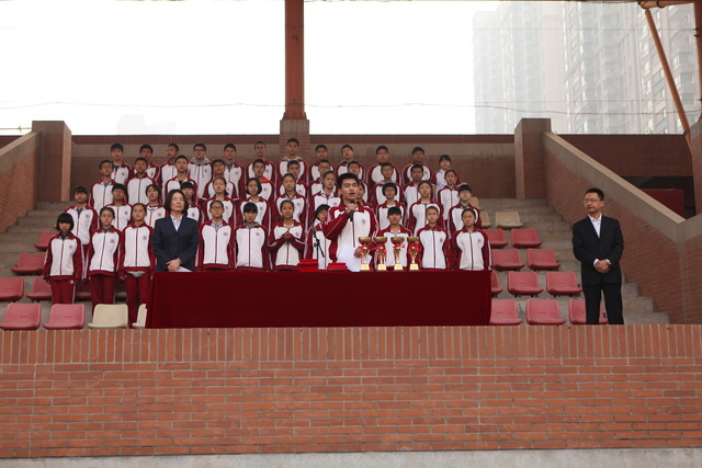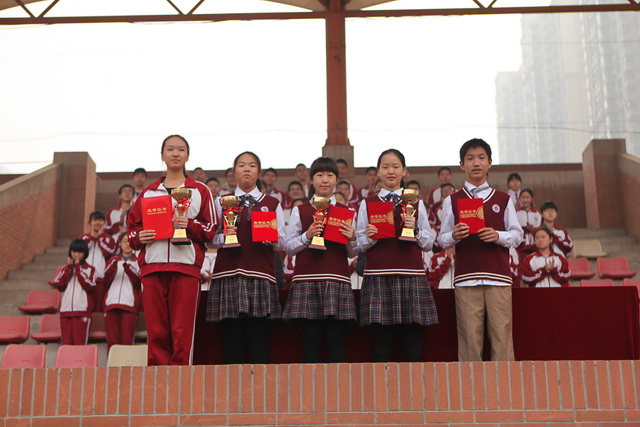 学校领导为我校合唱团、田径队、羽毛球队、以及参加西安市演讲比赛的志愿者们颁发了荣誉证书。 仪式共表彰了四项荣誉:一、我校合唱团在2015年7月21日参加了奥地利维也纳举办的第六届世界和平合唱节,并取得了一致好评,维也纳总部和世界和平合唱节组委会给每一位队员颁发了和平天使奖证书。二、我校黄晨、张媛两位老师带领学生参加了“蒲公英”、“星梦想”杯优秀艺人新人选拔活动。在此活动中,6名同学获得金奖,7名同学获得银奖,9名同学获得铜奖。黄晨张媛老师获得优秀指导教师奖。三、我校田径队和羽毛球队在宋吉利、袁龙、潘英老师的带领下,参加了9月19号—22号举办的西安市体育传统学校田径和羽毛球比赛。经过四天激烈的角逐,我校师生发扬了顽强拼搏的精神,首次参赛就取得了骄人的成绩。四、我校田佳润、宋卓琛等24名同学在西安市青年教师及中学生干部演讲比赛中担任志愿者工作。活动期间同学们表现优异,被西安市团市委,教育局授予学生“优秀志愿者”称号。同时,李金录、张笑然等八位同学在活动期间担任主持人的工作。他们表现突出,被西安市团市委、教育局授予“优秀主持人”称号。
