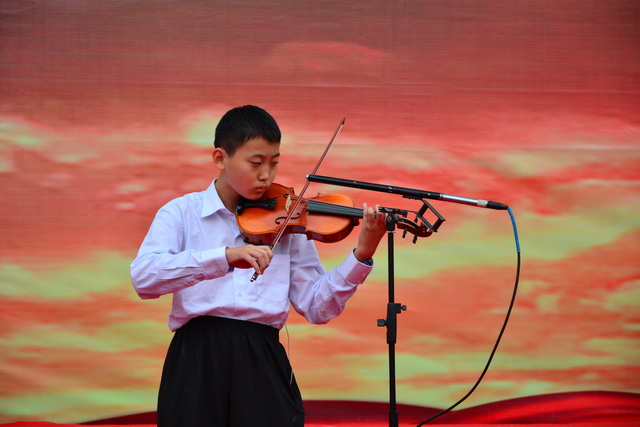 合唱比赛在教师代表队铿锵有力的《国歌》中拉开序幕,《松花江上》以及《解放区的天》,让大家重温了记忆中的的抗战经典歌曲。随后登台的学生代表队用饱满的热情、嘹亮的歌声、扎实的演唱功底、整齐的着装、朝气蓬勃的精神面貌歌唱了《歌唱祖国》《红旗飘飘》《黄河大合唱》等经典曲目,歌颂了中华民族万众一心、抵御外来侵略者的伟大抗战精神,抒发了为实现民族复兴的中国梦而发奋努力的壮志豪情,也展现了我校学生强烈的爱国热情和积极进取、昂扬向上的精神风貌。激昂的歌声和不时爆发出的阵阵掌声,将比赛一次次推向高潮,操场化身音乐的海洋,抗战歌曲响彻云霄。