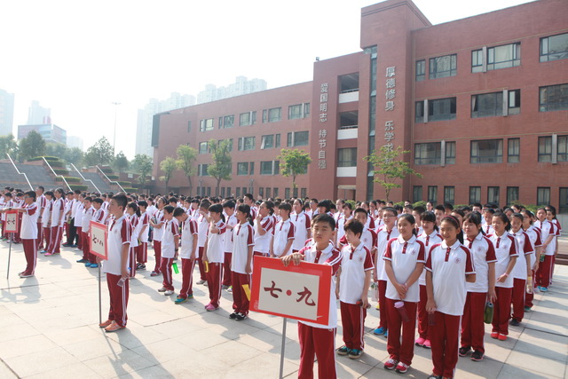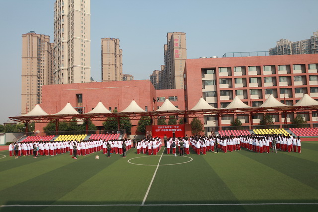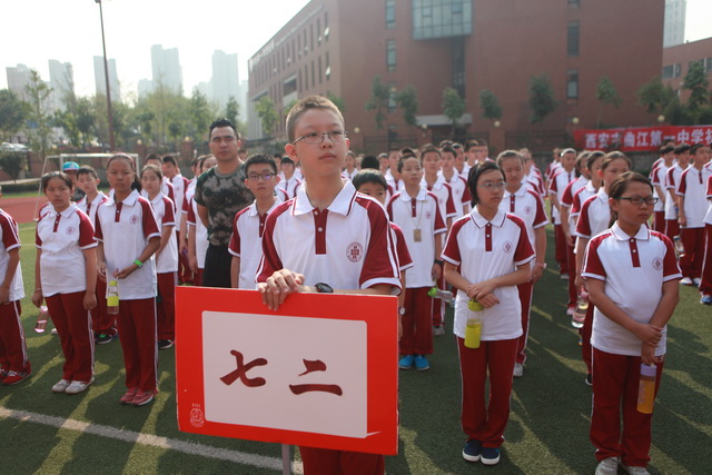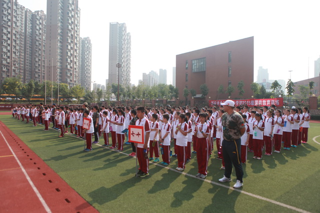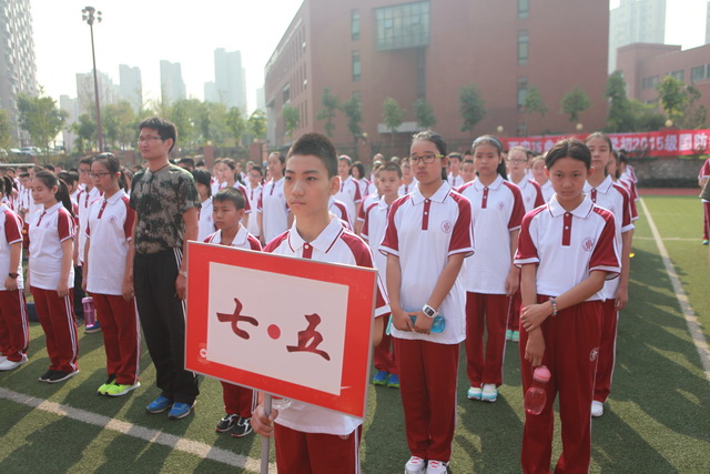 初2015级新生身着“曲江红”校服正装待发