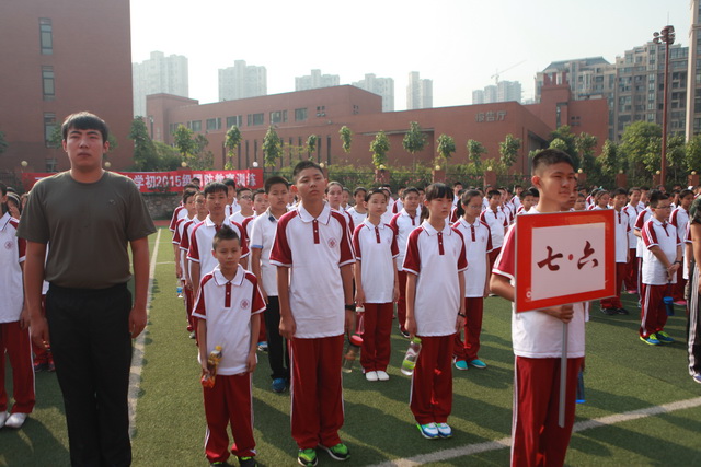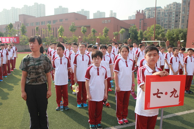 9:30,国防教育活动在教官们响亮的口号声中开始了。寂静了一个暑假的操场变成了激情的海洋。“稍息——立正——跨立——报数——”声不绝于耳,一声比一声严厉,一声比一声干脆;紧跟着的,是孩子们从最初的慌乱快速学得镇定了、从容了。双颊上的汗水不停流淌,回应教官的声音却不断加强。稍事休息后,各班学生回教室参加了入学第一次班会,各班班主任老师精心组织,热情的自我介绍,清晰的规范要求,加上快乐的小游戏,让师生、生生之间一下拉近了距离,满堂欢笑。带着新收获的友谊、快乐和自信,孩子们结束了上午的训练。