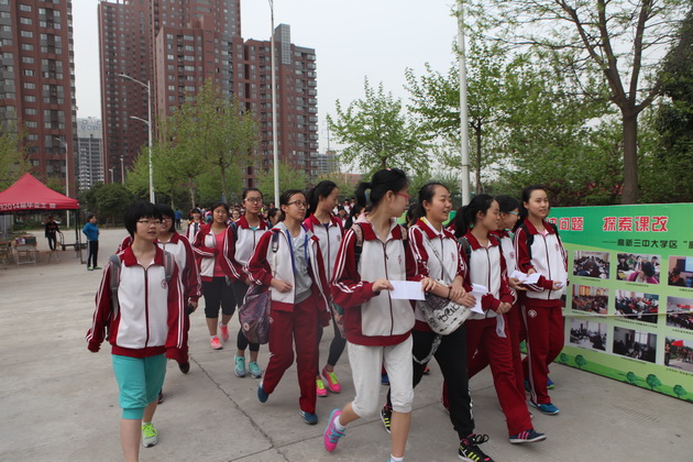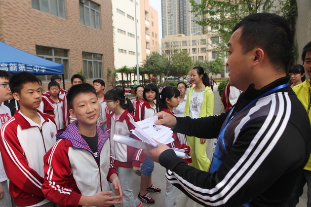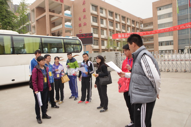 4月17日,曲江一中初2015届全体学生赴西安市高新三中考点参加了2015年西安市体育中考。初三年级部分教师陪同学生参加考试,我校常务副校长陈勇刚,副校长曹琦,教务处主任朱琳瑛,政教处副主任刘瑜莅临现场指导工作。