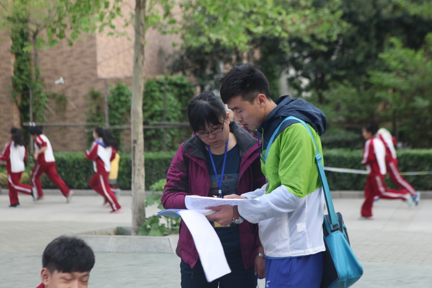 秉承公平文明考试的原则,领导和教师都站在操场外时刻关注着学生们的动态。当每组学生出来之后,第一时间都奔向班主任,高兴地相拥,认真地交流,场面令人感动。而在最终的长跑项目中,所有老师聚集在终点处,一声声加油呐喊鼓劲,一次次接下已经拼尽全力的学子们。最终,我校学子以不错的成绩凯旋。
