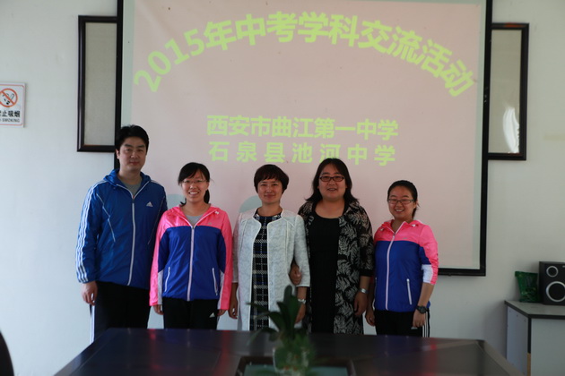 5月6日,曲江一中2015年中考交流活动,在石泉县池河中学落下帷幕。来自石泉县的城关中学、第四中学、熨斗中学、两河中学、饶峰中学、迎丰中学、池河中学教师与我校教师共同研讨了高效课堂的教学模式和学法指导。本次研讨交流活动在我校陈金叶、郝伟、商晔、丁章迅四节示范课中拉开序幕。8所学校教师通过示范课评课、高考复习计划讨论,共同探讨高效课堂教学模式,助力2015年中考。我校四位老师遵循“教学有法,教无定法,贵在得法”的曲江教学理念,立足“学生第一、特色发展”的办学理念,积极探索有效的“教”、“学”方法,形成自己独特的课堂教学模式和教学风格,深受石泉县教育同仁的认可和充分肯定。各位教师在讨论环节中畅所欲言、各抒己见,中肯的评价中饱含着对高效课堂的高远定位和科学理解,朴实的语言中流露着对高效课堂的真知灼见,灵动的体语表达着高效课堂贵在行动,实事求是的褒奖中充满了对师者的崇拜和欣赏。