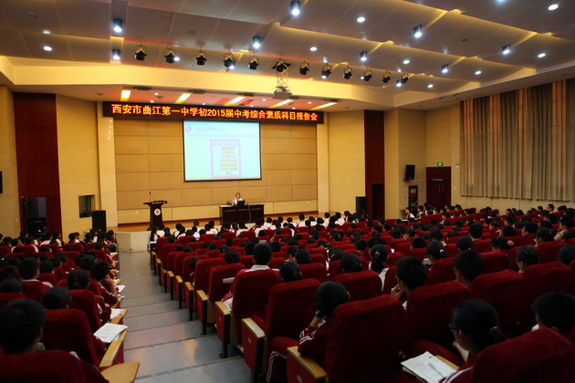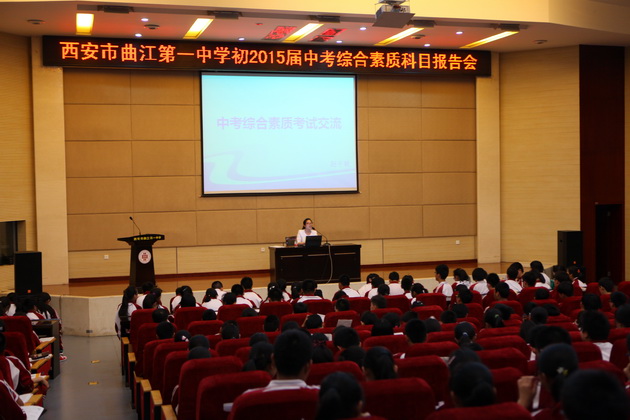 为了使考生了解中考综合素质科目考试情况,使学生有效复习备考,曲江一中初2015届年级组特邀陕西师范大学附属中学赵千秋老师于5月8日下午在学校报告厅召开中考综合素质科目报告会。会议由年级组长张洁老师主持,全体师生认真聆听了此次报告。
