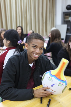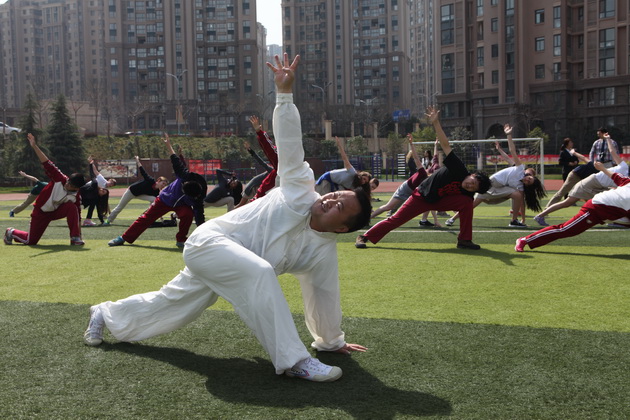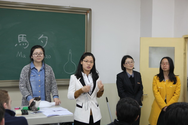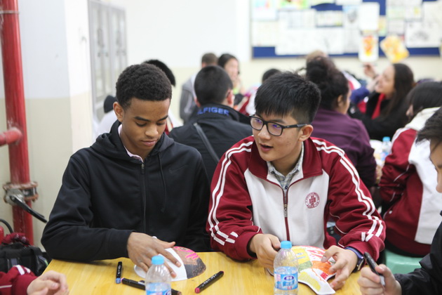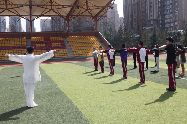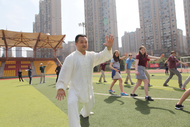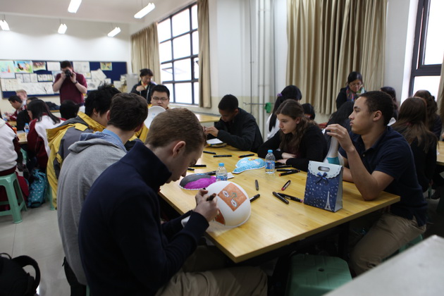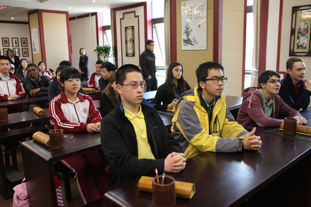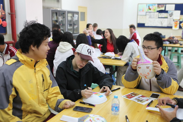 欢迎仪式过后,哥伦布学校的交流生前往我校国学教室共同学习特色课程,彭老师趣味地介绍了陕西文化,幽默诙谐的讲课风格让课堂气氛有序而活跃,更是将学生的拘谨一扫而空。在英语老师赵静的协助翻译下,美术老师张梦玥做了题为“马勺文化”的讲授,并亲手教学生画脸谱,体验这一独具魅力的文化。体育老师项红的太极课,则让学生们在初春明媚的阳光下特别的感受了一次中国功夫。一节节精彩纷呈的特色课,让哥伦布学校的师生感受到了中国文化厚重的底蕴。