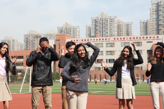 课前,哥伦布学生大秀《小苹果》