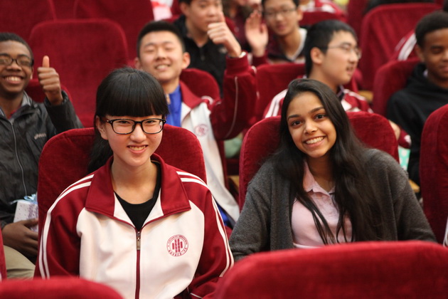 曲江一中高2017届结对同学热烈欢迎哥伦布学校师生