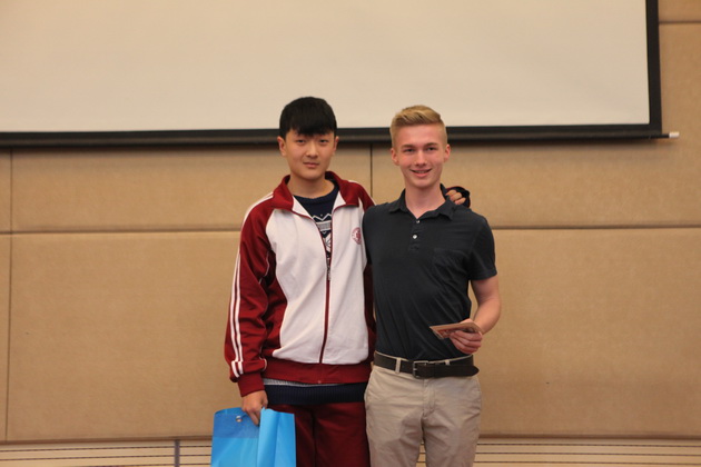 21日上午,高一年级组组长彭鸿莹老师在报告厅主持欢迎仪式,政教处余爱东主任、刘瑜副主任出席。余主任代表我校师生向哥伦布学校的30名学生及5位老师致以了诚挚的问候和衷心的祝愿。哥伦布学校教导主任MR.craig发言表达了对曲江一中师生热情欢迎的感谢,并祝愿在交流的时间里两校师生能够相互学习,沟通文化,真正做到有所收获。高2017届学生代表张馨月发言向哥伦布学校的师生表示了欢迎。最后两校交流生互换了礼物,一同合影留念。