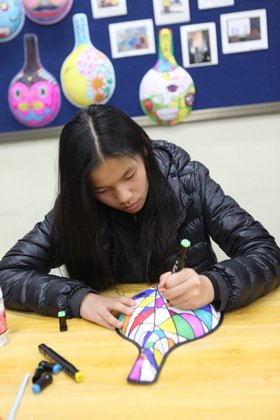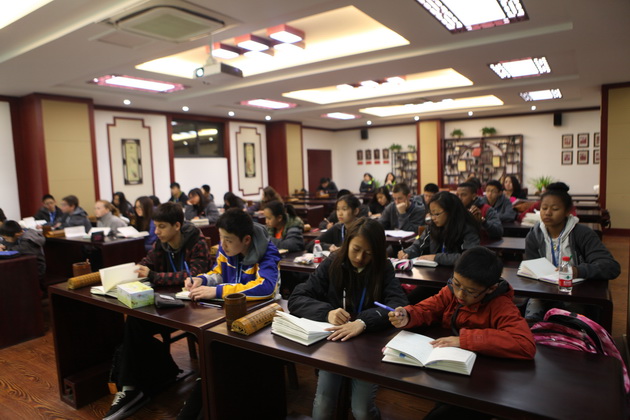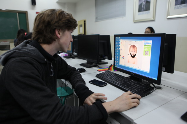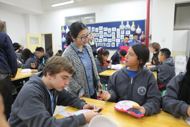 早上8点,师生们就开始了紧张而又精彩的特色课程学习交流之旅。我校为交流学生安排了民间马勺、陕西文化、太极拳、Amazing Mito xiuxiu、珠算、篮球友谊赛等带有浓郁中国风的开放式特色课。在课堂上,学生们积极踊跃地与各位特色课老师进行互动交流,感受中国传统文化以及西安这座历史古都所带来的震撼。马勺课上,张梦玥老师对马勺的起源作了生动讲解,配合社火的视频让学生们直观的了解到这种民间工艺的内涵,然后指导学生发挥各自想象力动手绘画,使得学生更加深入地理解了马勺这种民间文化的历史渊源和制作特点;陕西文化课上,赵静老师通过动感的视频欣赏带领同学们了解陕西,走进西安,不胜枚举的旅游景点、以及“陕西八大怪”等独具地方特色的文化给同学们留下了深刻的印象;太极拳课上,项红老师激情洋溢的讲授让学生们在互动中兴奋不已,并对中国功夫产生了浓厚的兴趣;Amazing Mito xiuxiu课上,冯超老师向同学们介绍了美图秀秀这款国产图片处理软件所独有图片特效、美容、边框、场景、拼图等功能;珠算课上,梁瑞静老师向同学们展示了中国传统的计算工具--算盘的使用规则与方法。各位老师精彩十足,独具特色的讲授得到了美方全体师生的高度赞扬。下午最后一节课,我校学生与美方学生进行了激烈的篮球友谊赛比拼,大家在紧张激烈而又趣味无穷的比赛中增进了彼此间的友谊。