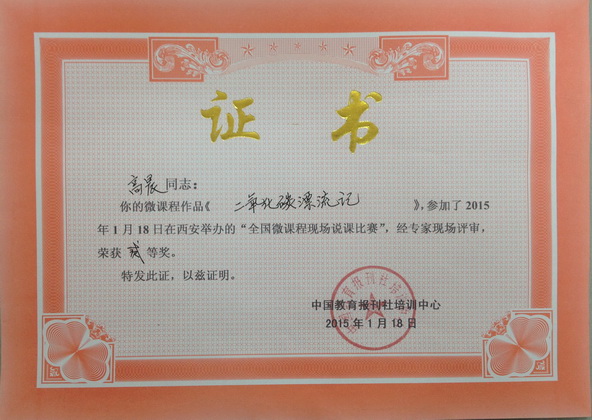 经过两天的学习,参加培训的四位教师不仅对微课程有了更加深刻的了解,并且可以自主开发自己的微课程以应用于日常的教育教学实践,以期从根本上改善学生的学习效果。 在此次培训后,我校三位老师参加了“全国微课程现场说课比赛”,经专家组现场评审,都取得了优异的成绩。