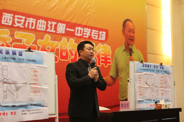 在两个多小时的专题讲座里,董进宇博士围绕教育的内涵、亲子关系模型、掌握教育方法、教育中的爱等方面,系统阐述了培育优秀子女的规律。他强调家庭教育的目的是培养真正的人,家长要在教育孩子的过程中学会引发孩子的成长动力,通过向孩子传递爱、表扬、鼓励、确认、理解、批评等,逐步培养孩子的自尊心、自信心、责任心以及学习兴趣和良好的习惯,完成孩子精神人格的塑造。