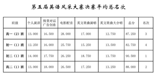 曲江一中第五届英语风采大赛结果