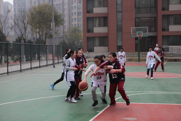 上午11点整,初2016届四班对阵初2016届二班。经过激烈的角逐,初2016届四班以24比8的比分赢得了比赛,取得两连胜。同时进行的初2016届九班与初2016届六班的比赛中,六班队员率先发起了强烈的进攻,取得了比分。随着比赛的进行,初2016届九班队员靠着默契的配合,闪电般的运球速度,最终以28比24的比分险胜对方。