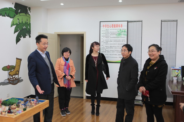常务副校长陈勇刚、学校办公室兼政教处主任余爱东陪同雁塔区教育局创文检查组查看功能部室