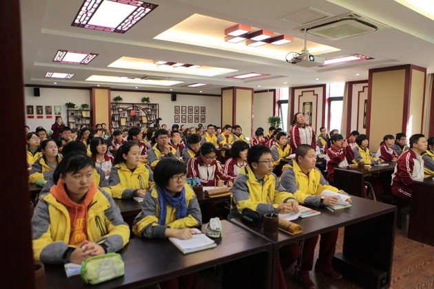 课后,两校语文教师欢聚一堂,积极评课,热情探讨“国学”的有效教学方法。在座谈会上,三原南郊中学的教师们对我校能在陕西省乃至全国率先开设 “国学”校本课程给予了高度评价,对我校在建校初就开展“国学”教育表示由衷的赞叹,希望曲江一中能共享“国学”教学资源,让“国学”尽快进入陕西省基础教育,发挥国学智慧,实现素质教育的均衡发展。