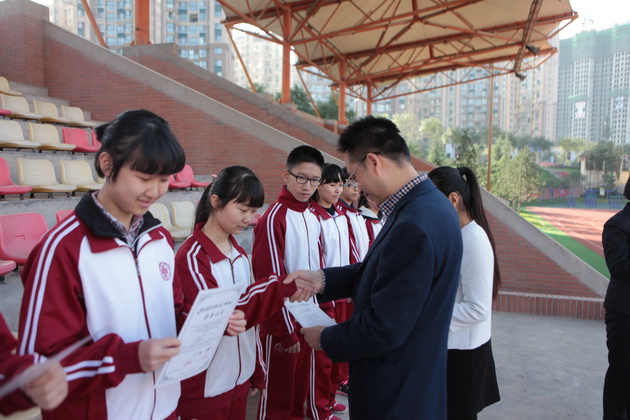常务副校长陈勇刚为我校在2014陕西省中小学拼词大赛暨第88届美国拼词大赛陕西赛区比赛中获奖同学颁发荣誉证书 |