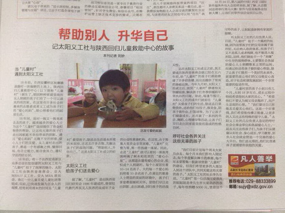 白鹿原儿童村又名“太阳村”,创办于1996年,全称陕西省回归研究会儿童村,是一个面对犯罪家庭儿童开放的非盈利、非政府性的组织,完全依靠社会的关爱和捐赠坚持到现在。由于没有政府财力支持,经费紧张,儿童村双休日对外开放。据儿童村老师介绍说:“这里的孩子大多都是服刑人员的子女,最小的只有3岁。在没有进儿童村之前,孩子们过着吃不饱、穿不暖的生活,完全感受不到家庭的温暖,很多孩子都比较内向。来到这里之后,在老师的开导和社会各界的好心人的关心下,不仅儿童村的硬件条件在有所改善,而且孩子们的精神面貌也更加积极,更多的孩子消除了对社会的报复心理,愿意通过自己的努力做一个对社会有贡献的人。”