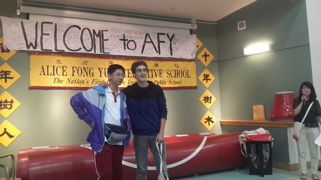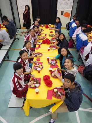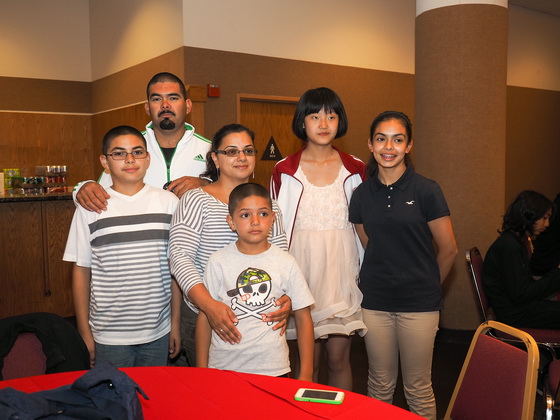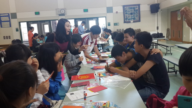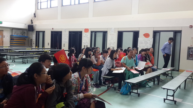 最让人感动的是尤方玉平学校热情的欢迎仪式。美国同学们早早地打着欢迎的横幅在大门口等候。美国家长们作为志愿者准备好了丰盛的烧烤晚餐,包括甜点,饮料,布置好会场,欢迎中国远道而来的朋友们。当地教育局的局长,官员也出席了欢迎晚宴。双方代表发言后,同学们一一上台,与结对的美方同学合影。现场气氛很是热烈,欢声笑语荡漾在整个会场。看得出来同学们情绪高涨,很是兴奋。