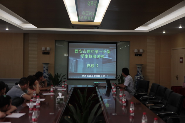 7月14日9:00在学校第一会议室召开2014级学生正装校服招标会。此次招标会共有五家厂家参与招标,参与招标厂家有:宝鸡绿夏、西安锦业、江苏兰诗国际、陕西至盈、庄吉集团。五家企业均为西安市教育局公布的校服厂家定点单位。