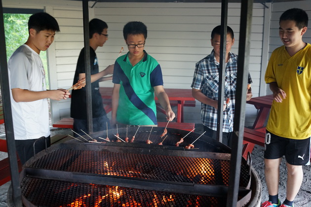我们很难用语言去形容乌普萨拉的魅力,作为瑞典第四大城市的乌普萨拉,在中国的国土上的确只能算作小镇,但在这里却保留了完整的原始森林,而特训营的又一个重量级项目也将在这个营地展开。三个小时的森林徒步,同学们整装而行。没有人感到疲倦,也没有人抱怨和懊恼,大家都在努力的前行,享受与自然亲近的快乐。中午在营地,老师和同学们一起动手制作美味的午餐,也许是因为付出了自己的劳动,所以大家的午餐时分尤其尽兴。而与当地学生的一场足球互动,更是让同龄的孩子跨越了语言和国籍的障碍,毫无保留的拥抱彼此的文化和信仰。还有汤洪海老师组织的营地团队活动,让同学们在失败中总结经验,丢掉彼此的推诿,勇敢的认识自己的问题,更加友爱的团结在一起,为了分队的荣誉而拼搏。夕阳西下的时候,在营地的草坪上,一字排开的餐桌,让大家有种温暖而幸福的感觉,也许温室的花朵在此刻体会到了绽放于自然的兴奋与热烈。
