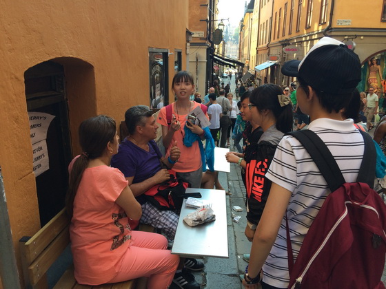7月9日,同学们来到了瑞典首都斯德哥尔摩,在这里,大家将经历更为新鲜的探索。在王晓飞老师的耐心讲解之后,每个分队都将通过体验当地的公共交通工具到达指定点。同学们在接到指令后,纷纷丢掉自己的胆怯,走上街头大胆的与当地居民攀谈,寻找线路,到达地点。在老城寻宝的过程中,同学们更是开动集体的智慧,分工合作,有的分队迅速就找到了线索,迈向成功的目标;有的分队开始落后,却不急不躁,很快迎头赶上,洋溢着浓郁北欧风情的老城里,充满了中国学生的身影,他们落落大方,款款而谈,努力积极的为着全队的荣誉而战,我们也在这样青春的奔跑中,看到了课堂外学生们活泼、真实的一面,看到了他们主动、成熟的一面。在这片充满着维京冒险精神的土壤上,来自古典长安的曲一学子们正在迸发自己的生命热情。