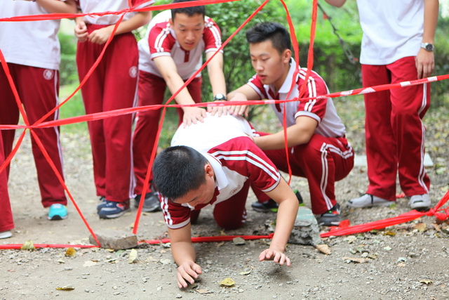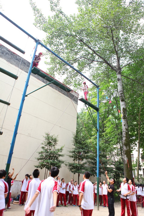首先进行的项目是“信任背摔”。这使学生互相信任,互相支持、支撑。就像在生活中,父母、老师、朋友的支持可以是我们鼓起勇气,勇往直前。