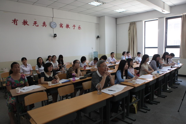 东南学校的老师及课题组专家成员首先观摩了两节浸入式英语科学课,然后英语教研组组长张亚权老师对我校浸入式的开展情况,从课程设置,教材及教师培训等方面做了详细的介绍。我校浸入式课题的两位负责人张洁和恭静老师对我校浸入式英语分别从教学和教研两方面的开展情况做了补充。课后,东南学校教师对他们的浸入式教师及教学情况也做了简要的介绍。通过这次观摩,他们体会到浸入式英语课程的设置应该将课情与学情相结合并且更具系统性,并且对我们这两节课也提出了宝贵意见。最后,马教授对我校浸入式开展情况给与了高度赞扬,也对未来浸入式英语教学的发展提出了建设性的建议。相信,在课题组专家的指导下,课题组所有老师的努力下,浸入式英语教学将会有更大的突破。