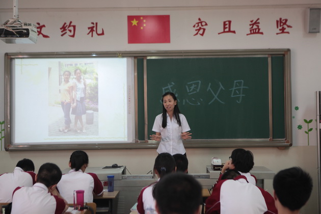 各班班主任积极准备。班会课上利用图片,音乐,视频等多种音效资料创设氛围,调动学生。一曲《感恩的心》让多少学生联系生活,心怀谢意。父母操劳的照片,那鬓角的白发无不触动学生柔软的内心。班会课上学生积极发言,说出了对生活最真切的感悟,畅谈了心中的感恩。