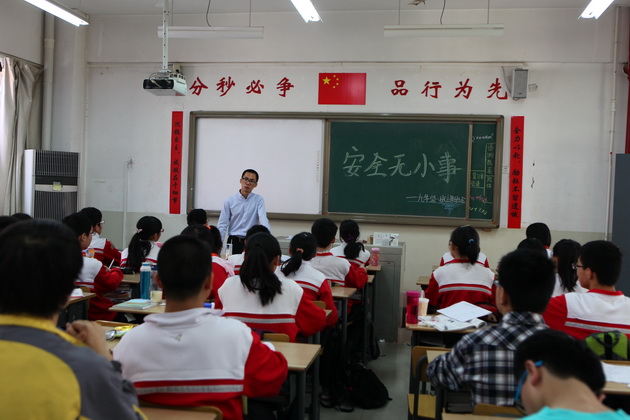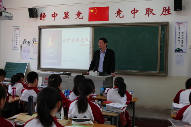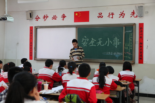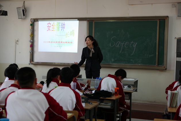 4月9日上午10点,交通安全主题班会课在我校43个班级中如期举行。经过班主任老师的充分准备,广大学生的积极配合,共同搜集了很多有关交通安全方面的资料,设计了学生喜闻乐见的活动形式。班主任老师们通过小小的游戏让同学们认识很多交通标志,通过交通安全方面的小故事告诉同学们交通安全的重要性,不仅是珍爱生命的表现,更是遵守社会公德,对他人生命负责的表现。进而引申到我们中学生在交通安全方面应注意的问题,比如骑自行车不载人、不吃零食,不闯红灯,不扶身并行、互相追逐,不双手离把,不打伞骑车;骑车时不接打电话;走路时不闯红灯,不三五成群并肩走,不在马路上打闹嬉戏,不在马路上使用划板、旱冰鞋等,做到高高兴兴出门来,安安全全回家去。最后通过同学们之间的激烈讨论上放学路上,自己或他人遭遇交通事故,或自己将别人撞到该怎么办?让同他们深刻掌握交通事故应急处置流程,进一步学会保护自己。