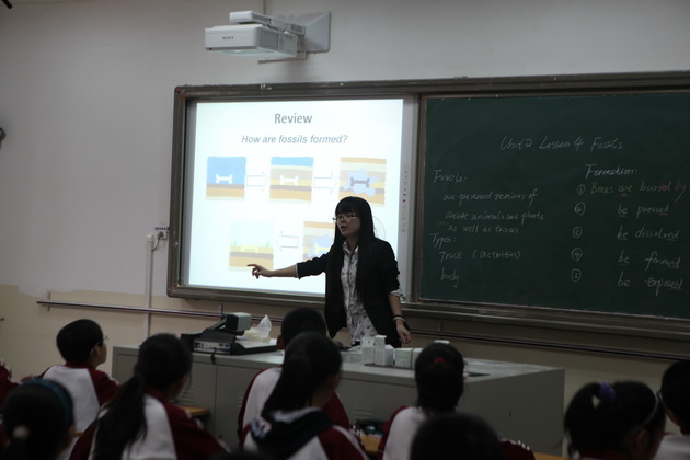 我校初一年级的何丽梅老师以英语为媒介,展示了一节生动的地理课“Earthquakes”。 何丽梅老师的课堂思路清晰,讲解细致而耐心,课堂活动生动有趣,课堂操控能力很强,使学生得以在轻松愉快地氛围之中学习。初一年级的另一位英语教师高婷展示了另外一节地理课“Fossils”。高婷老师授课方式活泼,以三段有趣的视频让学生们逐渐了解化石的相关知识。同时,在课堂上,高老师要求学生手绘化石形成过程,并且当堂制作化石,令人印象深刻。