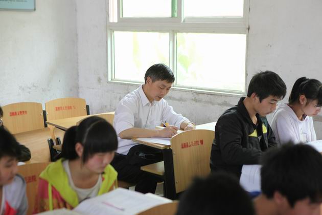 汉阴县平梁中学校长钟正聆听龚老师示范课《写作指导》