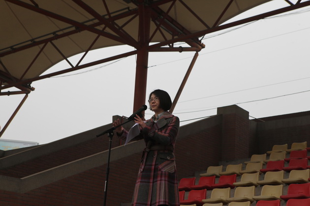 学生会纪检部部长毕雪儿同学宣读学校禁烟倡议书